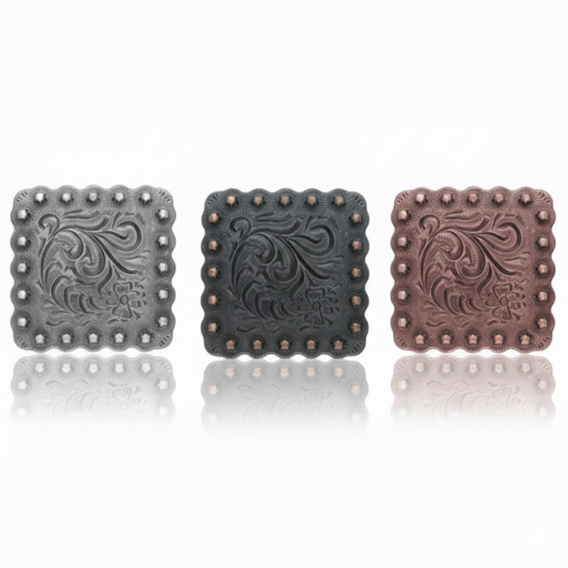 Concho carré à fleurs de baies cuivre avec vis chicago