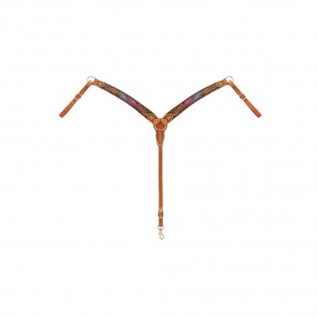 Le cuir légèrement huilé présente un design sculpté avec des accents de cuir peints à la main et un ponçage subtil pour une touche de style rustique Fabriqué en cuir de vache véritable pour une qualité à laquelle vous pouvez faire confiance Ferrures en acier inoxydable Les pièces de poitrine s'effilent de 1-3/4".