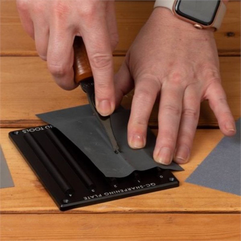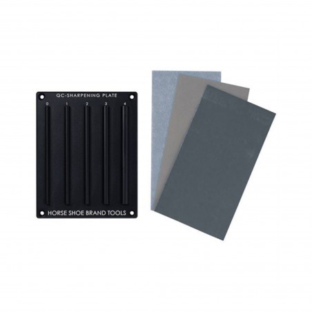 Trois feuilles de papier de verre sont incluses pour l'affûtage et le polissage final de vos outils.
