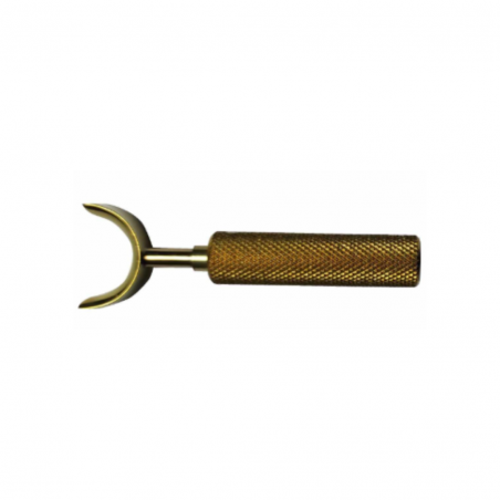 L'index se positionne sur l'étrier, le pouce et le majeur et l'annulaire de chaque côté du barillet comme pour tenir un crayon. Avec l'index, on contrôle la pression excercé sur l'outil tandis que les autres doigts servent à faire pivoter pour inciser les contours du motif.