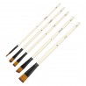 Le produit comprend : Pinceaux ronds (1), Pinceaux plats (1), Pinceaux en Filbert (1), Pinceaux plats (1) et Pinceau angulaire (1).