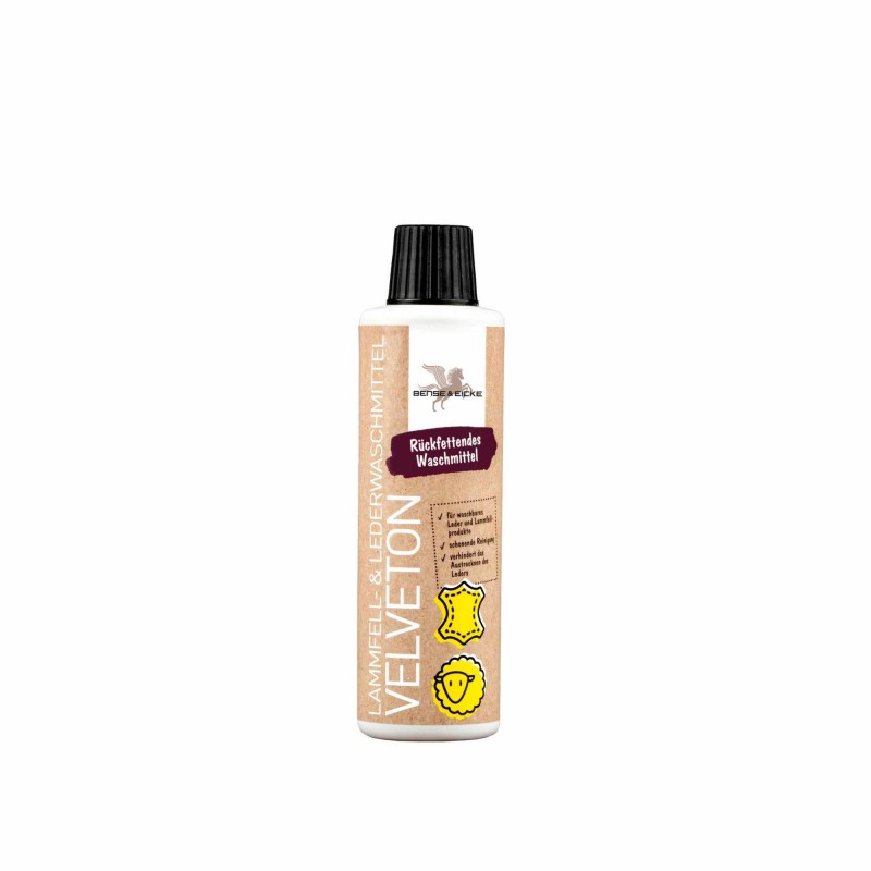 In addition to cleansing and mostly natural raw materials, Velveton Lambskin & Leather Detergent also contains moisturising substances that stop leather from drying out and hardening. Velveton is also suitable for lambskin products, washable leather, clothes with leather details, riding breeches, leather gloves and leather clothing.