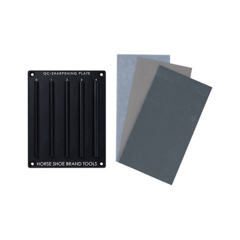 Three sheets of sandpaper are included for sharpening and final polishing of your tools