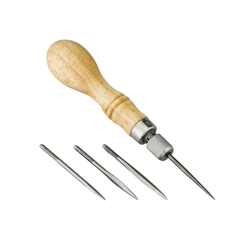 This deluxe punch set is a handy tool for general lacing and sewing. The long blades make it ideal for projects of various sizes.