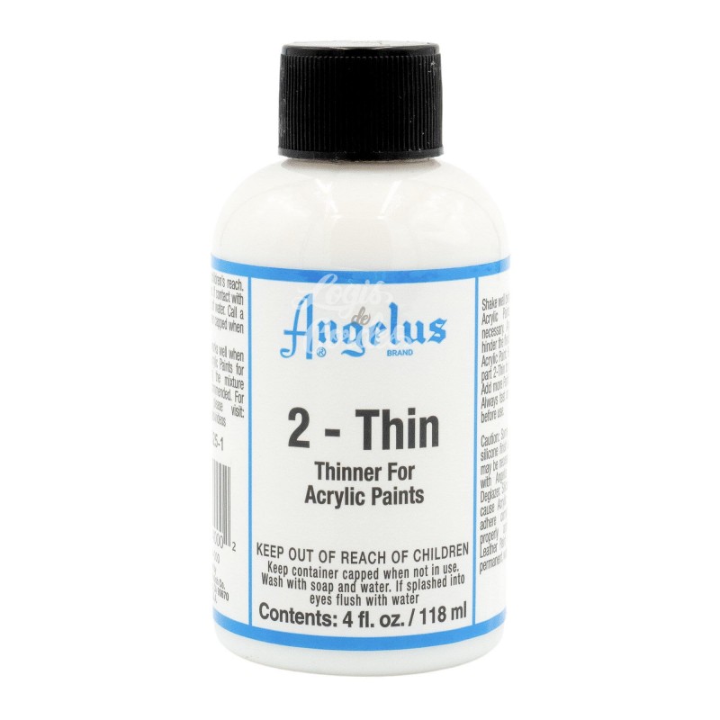 Angelus Thin is a thinner for Angelus paint. It allows you to use Angelus paint with an airbrush, it is also advisable to use it when you want to paint a woven surface, it allows the paint to better penetrate the fibres. Works with the full range of Angelus paints.