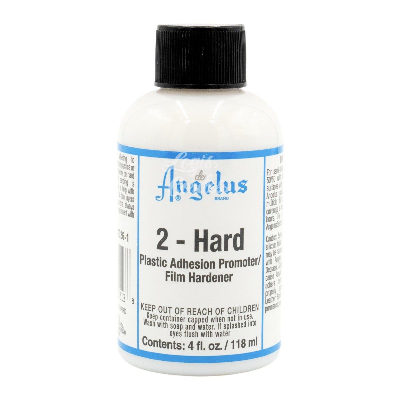 Angelus 2 Hard is a medium for Angelus paint. It allows you to use Angelus paint on surfaces such as plastic or metal. It is generally recommended to mix 50% Angelus 2 Hard with 50% paint for slightly flexible surfaces such as some plastics and 75% 2 Hard with 25% paint for rigid surfaces such as metal, glass or some rigid plastics.