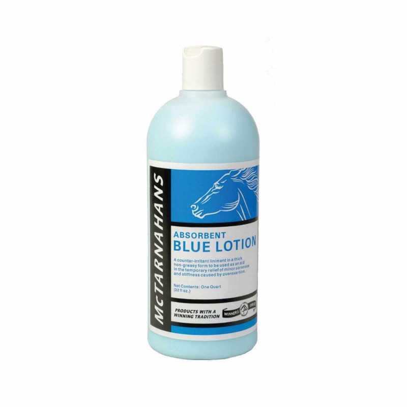 McTarnahans Blue Absorbent Lotion is a counter-irritant liniment and warming lotion in a thick, non-greasy form to be used as an aid for the temporary relief of minor aches and stiffness caused by overexertion.
