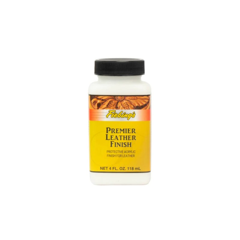The Premier leather finish is an acrylic based semi-gloss top finish for veg-tanned leather. It is flexible and resist water, it works great over any Fiebing's leather dye or stain product. It could also be used to resist or block the effect of acrylic stains or antiques for highlighting areas.