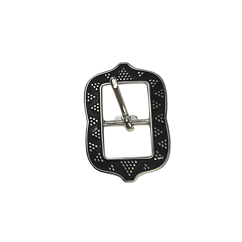Jeremiah watt's Centerbar Buckle or some call these double buckles. Moroccan pattern.Stainless with black patina.