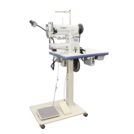 Présentation du produit : Conçue pour coudre des articles en cuir, des sangles en nylon, de la toile, du denim, des matériaux synthétiques et des tissus épais Le mécanisme d'entraînement à double pied permet de coudre du cuir d'une épaisseur maximale de 1,27 cm Ensemble avec socle : table à pied central peu encombrante, réducteur de vitesse et roulettes verrouillables inclus Moteur de positionnement automatique de l'aiguille SmartServo-NP Guide laser Guide latéral à rouleau rabattable Table à plateau plat en aluminium Comprend une table assemblée et un moteur de positionnement de l'aiguille SmartServo-NP à vitesse réglable Comprend une garantie à vie limitée