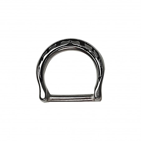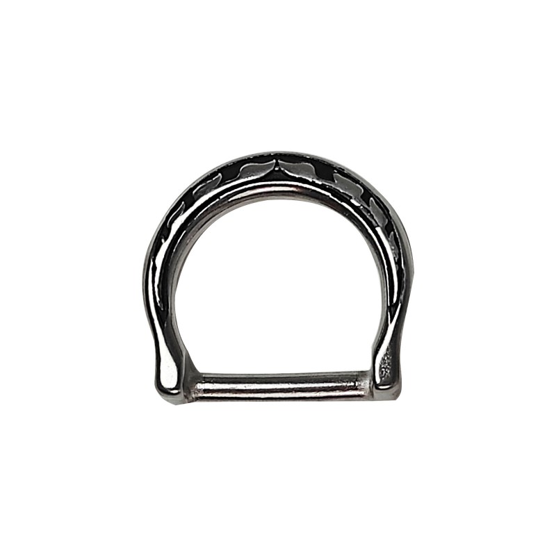jeremiah watt's Breast Collar Dee. This is a breast collar dee with a little thought put into it, along with some engineering. Our floral dee, made of high grade stainless, has an offset in it which relieves some of the wear on the leading edge of your saddle skirt.